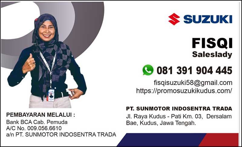 Kami memahami bahwa sebuah kendaraan bukan hanya alat transportasi, tetapi juga sahabat yang menemani hari-hari Anda, mencatat kenangan bersama keluarga, atau menjadi bagian dari usaha yang Anda bangun dengan keringat dan doa. Karena itu, kami, bersama Mbak Fisqi, sales terpercaya Suzuki di Demak, selalu siap mendampingi Anda dalam memilih kendaraan yang paling tepat, seperti memilih bait yang pas dalam puisi cinta.