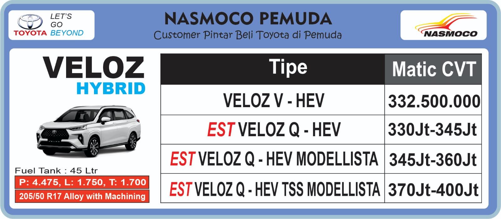 DAFTAR HARGA OTR TOYOTA TERBARU – TOYOTA NASMOCO PEMUDA KENDAL SEMARANG
