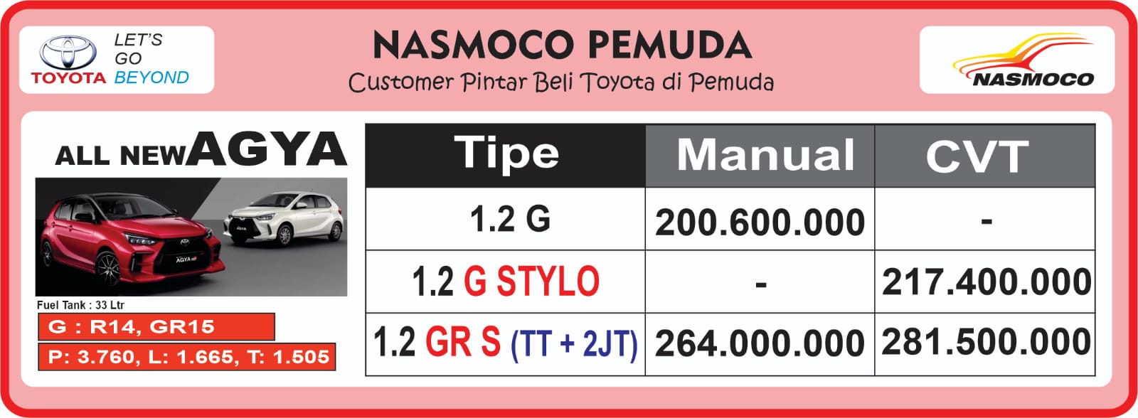 ‎Agya GR-S 1.5 M/T: 254.500.000