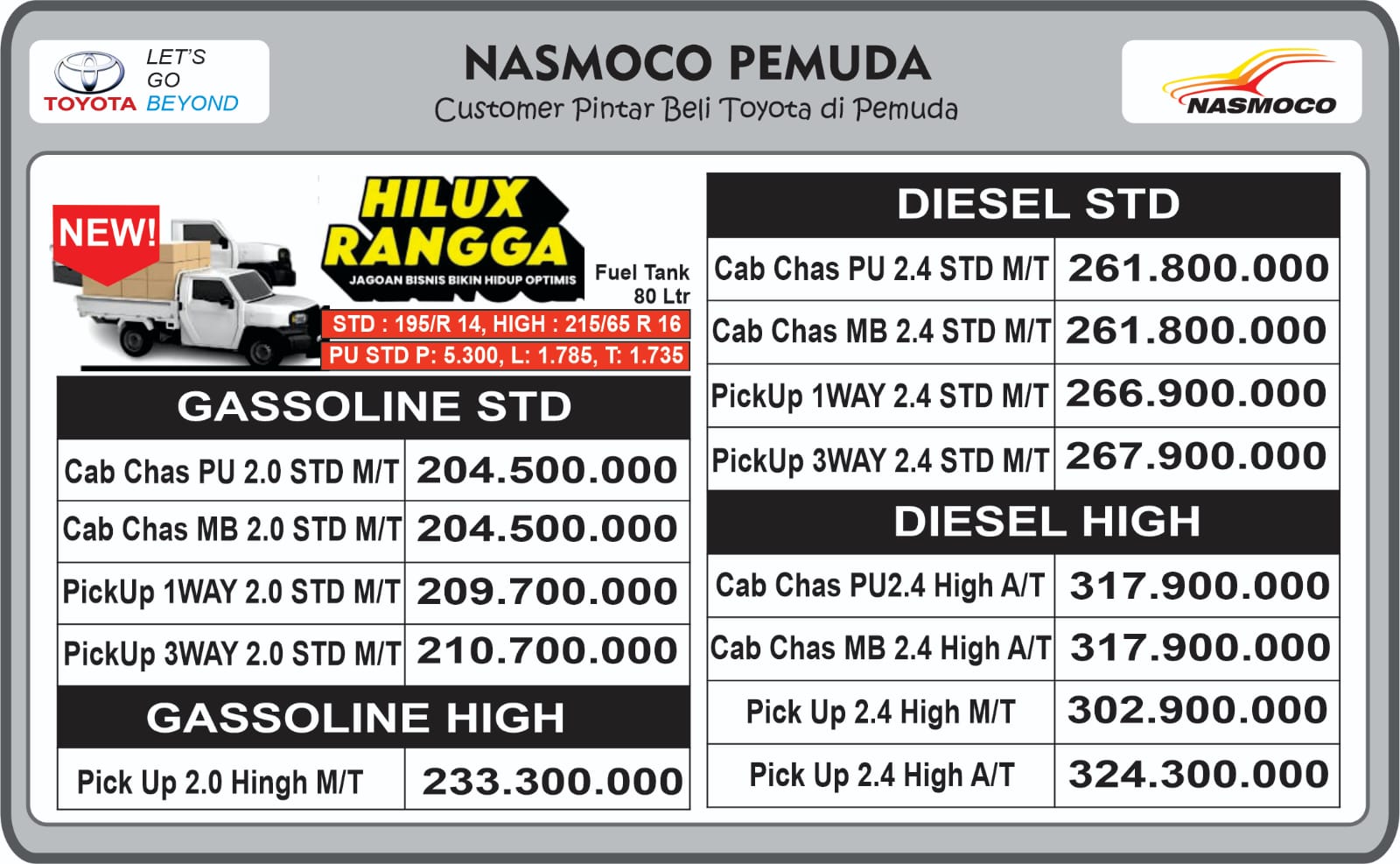 Hilux 2.4 G M/T Double Cab 4×4 : 522,300,000