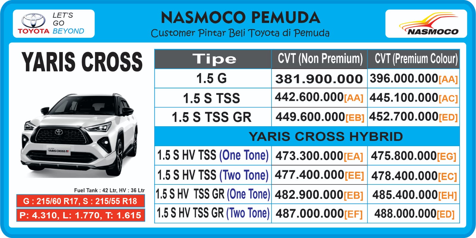 ‎Yaris Cross G CVT: 396.000.000
