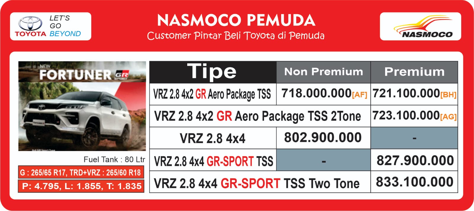 ‎Fortuner 2.8 GR Sport 4×4 TSS: 833.100.000